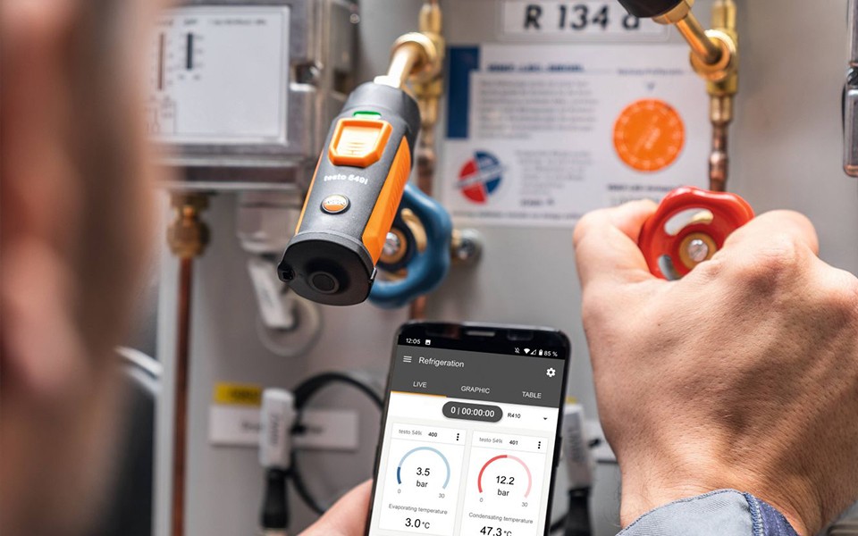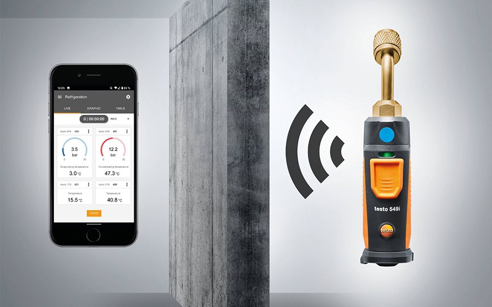 智能無線迷你壓力測量儀,適用于對空調(diào)和制冷系統(tǒng)進(jìn)行維修和故障排除。此外,通過安裝在智能設(shè)備(手機(jī)或平板電腦)testo Smart APP智能應(yīng)用程序還可以自動計(jì)算蒸發(fā)和冷凝溫度。