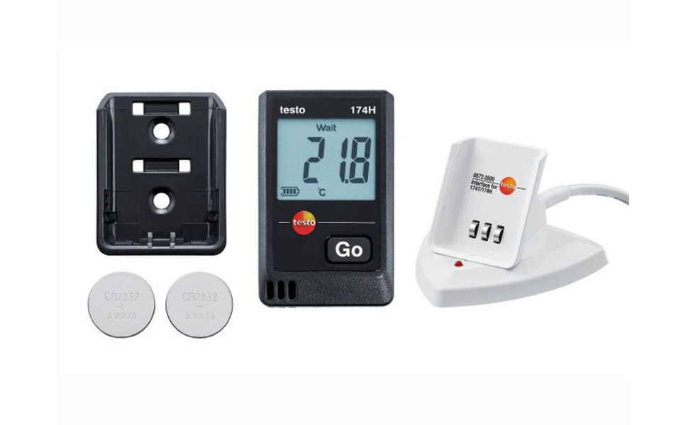 testo 174 H 迷你型數(shù)據(jù)記錄儀,墻面支架,2節(jié)CR 2032鋰電池和出廠報(bào)告。