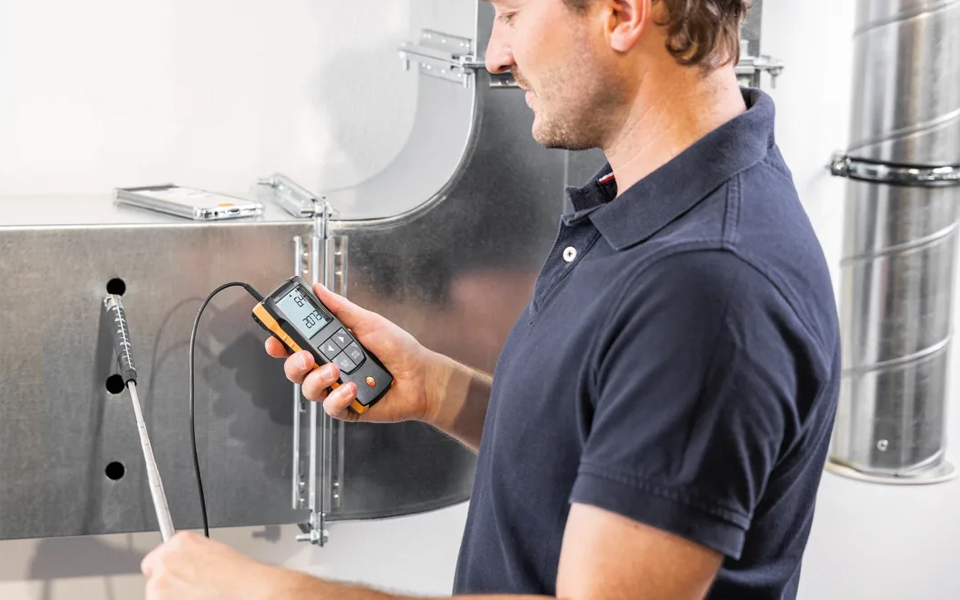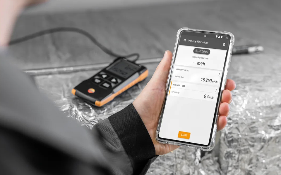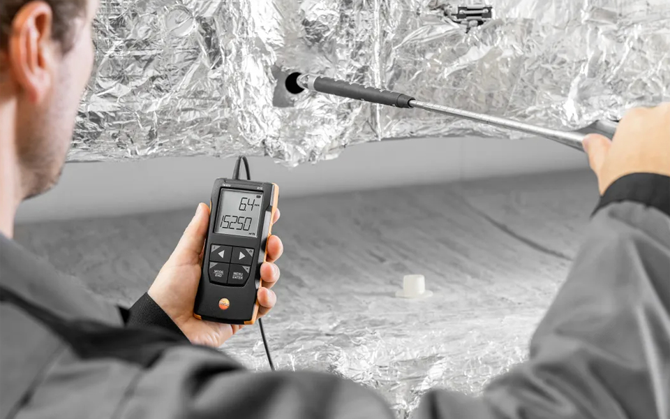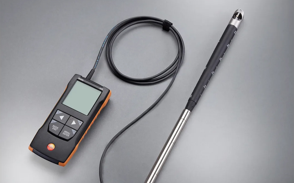 使用帶有伸縮探頭和可連接App的16mm葉輪風(fēng)速計(jì)testo 416,您可以輕松、快速、精確地在空調(diào)和通風(fēng)系統(tǒng)的通風(fēng)管道中進(jìn)行風(fēng)速測(cè)量。